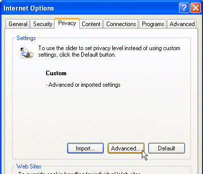 4. Once in the privacy tab, click on the Advanced... button in the Settings section to display the Advanced Options window.
